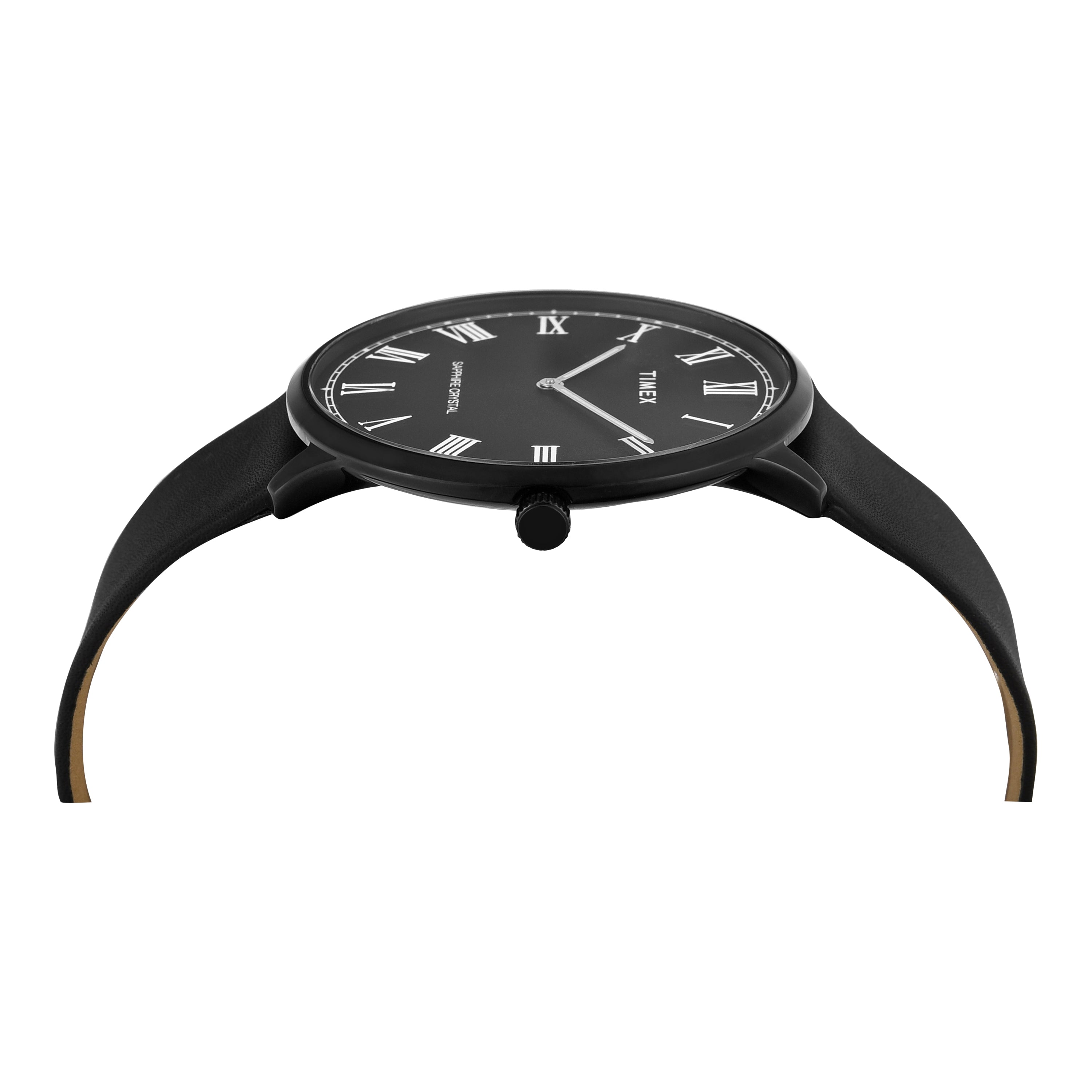 Timex Fashion Leather Black Round Dial Quartz Analog Men Watch