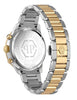 Splash your life with a tinge of liveliness and colour by wearing this men's analog watch from the Pya-Pleinmeter collection by PHILIPP PLEIN. The stainless steel strap flaunts a two tone hue that elevates the look of the watch. Enclosed in a 44 mm case, the green round dial is secured by a mineral glass. It displays chronograph. Besides, it is finished with a deployment clasp with push button clasp that provides a secure fit on the wrist.