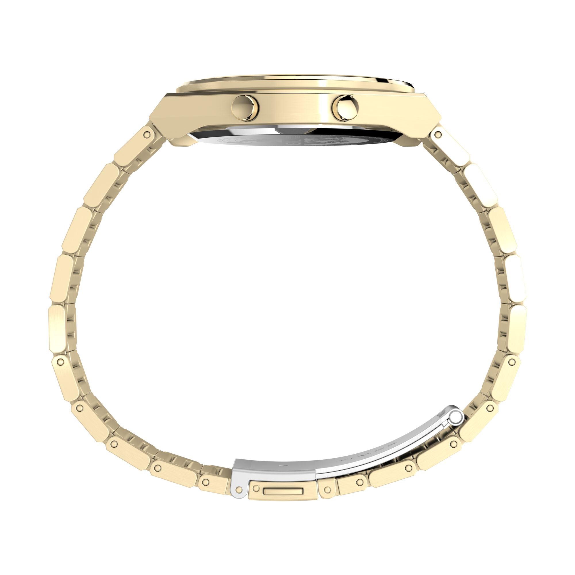 Channeling the bold designs and decadent glamour of West Hollywood, the Timex Q80 reimagines our Q Timex® with a sleek round case design and rectangular digital display encircled with sunburst brushing. Timelessly cool, it features the same reliable features as our iconic T80 as well as our INDIGLO® backlight for visibility on late nights. Crafted with a gold-tone or silver-tone 39mm brushed stainless-steel case with polished edges, it comes with a coordinating brushed stainless-steel bracelet that combines vintage charm with modern functionality.