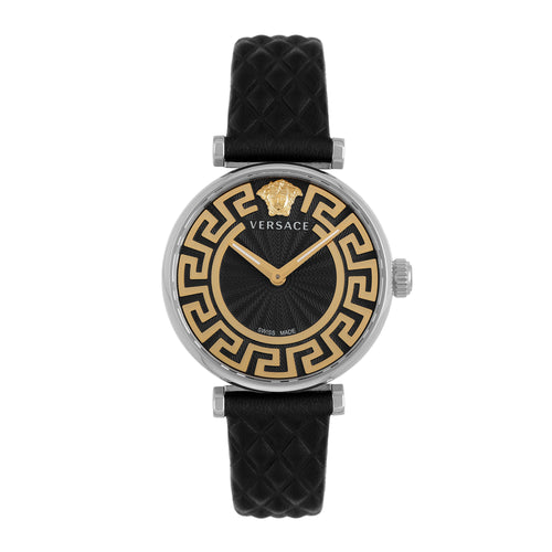 Versace Leather Black Round Dial Quartz Analog Women Watch