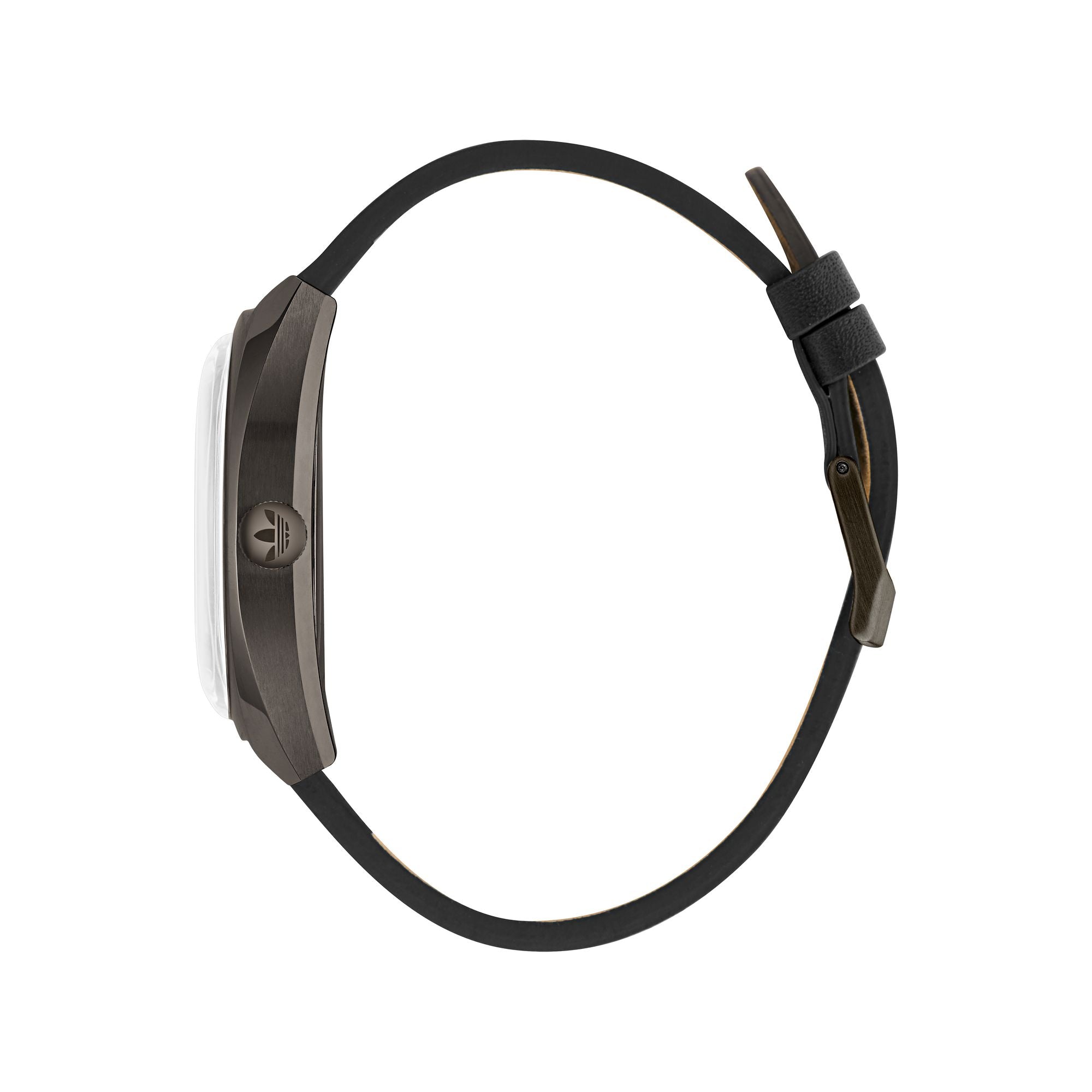 Dressed in black and gold, this adidas Edition One watch is an elegant timepiece with bold design. The face pops with an oversized cut-through Trefoil logo at the centre, encapsulated into a sleek stainless steel case topped by a domed lens. Black tie meets street party style.