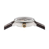 Discover the TS1 Automatic—a refined tribute to Aston Martin’s legacy. A 41mm case in recycled stainless steel houses a skeletonized black dial with small seconds, elegantly paired with a smooth, patterned brown leather strap.