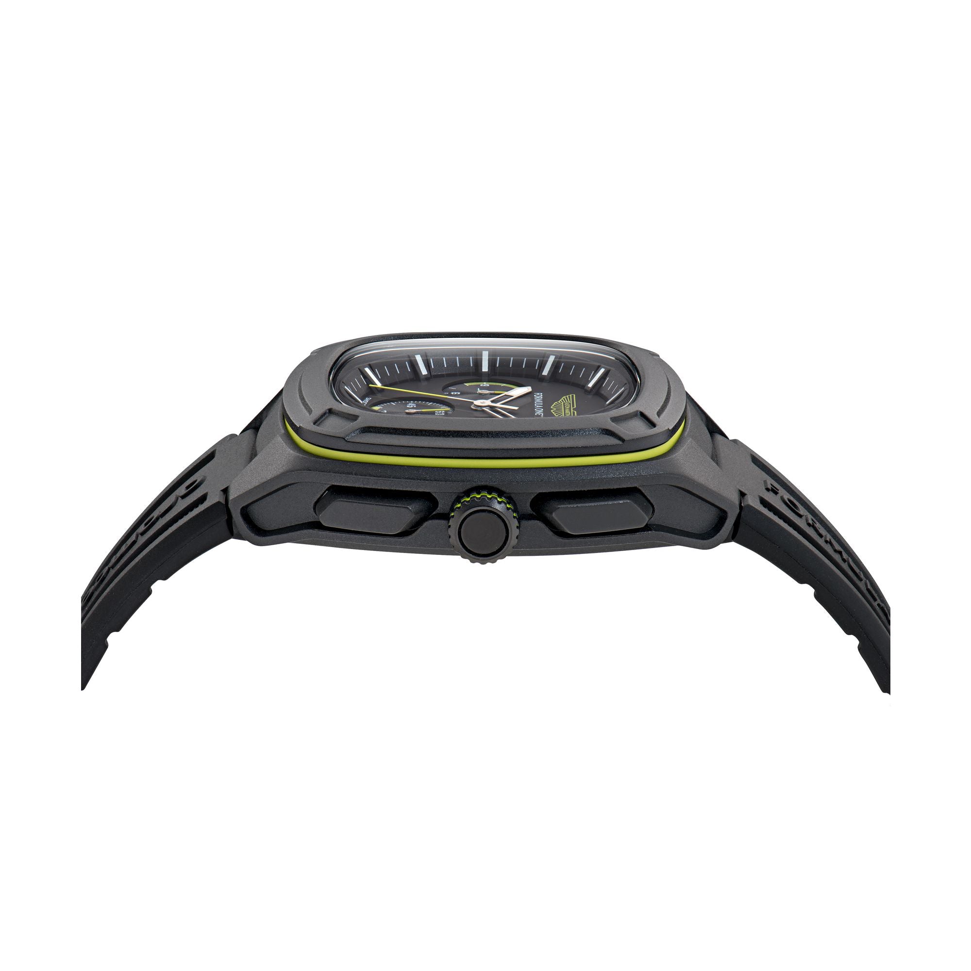 A bold look with high-performance intent.This model goes fully tonal with a 44mm black case, black multifunction dial, top ting and matching black silicone strap. The lime essence lipstick layer detail and accents on the dial give a nod to performance culture, rounding out a timepiece designed for stealth appeal and everyday grit.