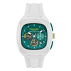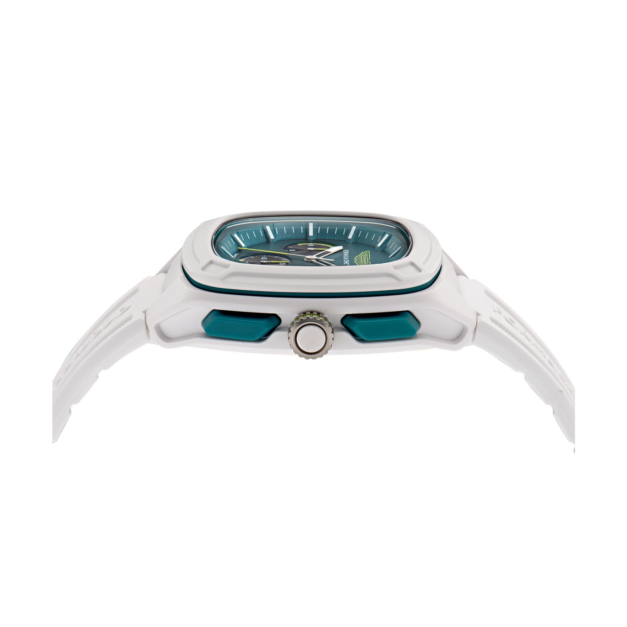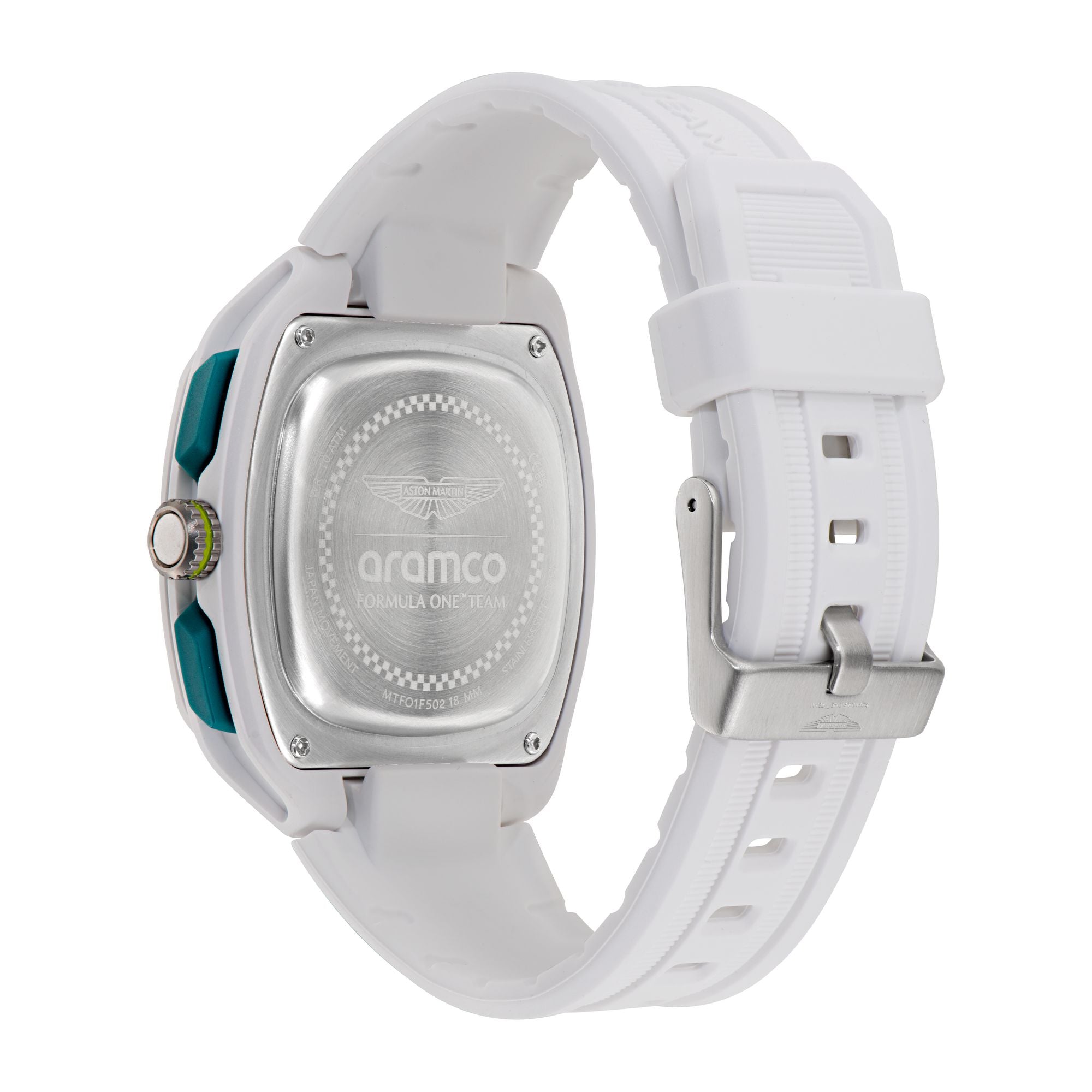 A bold look with high-performance intent. With a 44mm white plastic case and white silicone strap, this version of the OVR offers a fresh take on racing flair. The Podium Green dial and lipstick-effect accent layer capture Aston Martin’s DNA, while the multifunction display with white top ring brings performance to everyday wear.