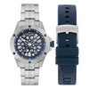 Built for impact and style. Offered in a premium boxset and featuring a 41mm case, this RIM includes both a blue silicone strap and RSST bracelet, both engraved with “ASTON MARTIN” logo. Blue accents on the dial, bezel screws, and crown deliver a coordinated, vibrant aesthetic. A transparent case back reveals the intricate automatic movement and a rotor in signature Podium Green, linking innovation with Aston Martin heritage.