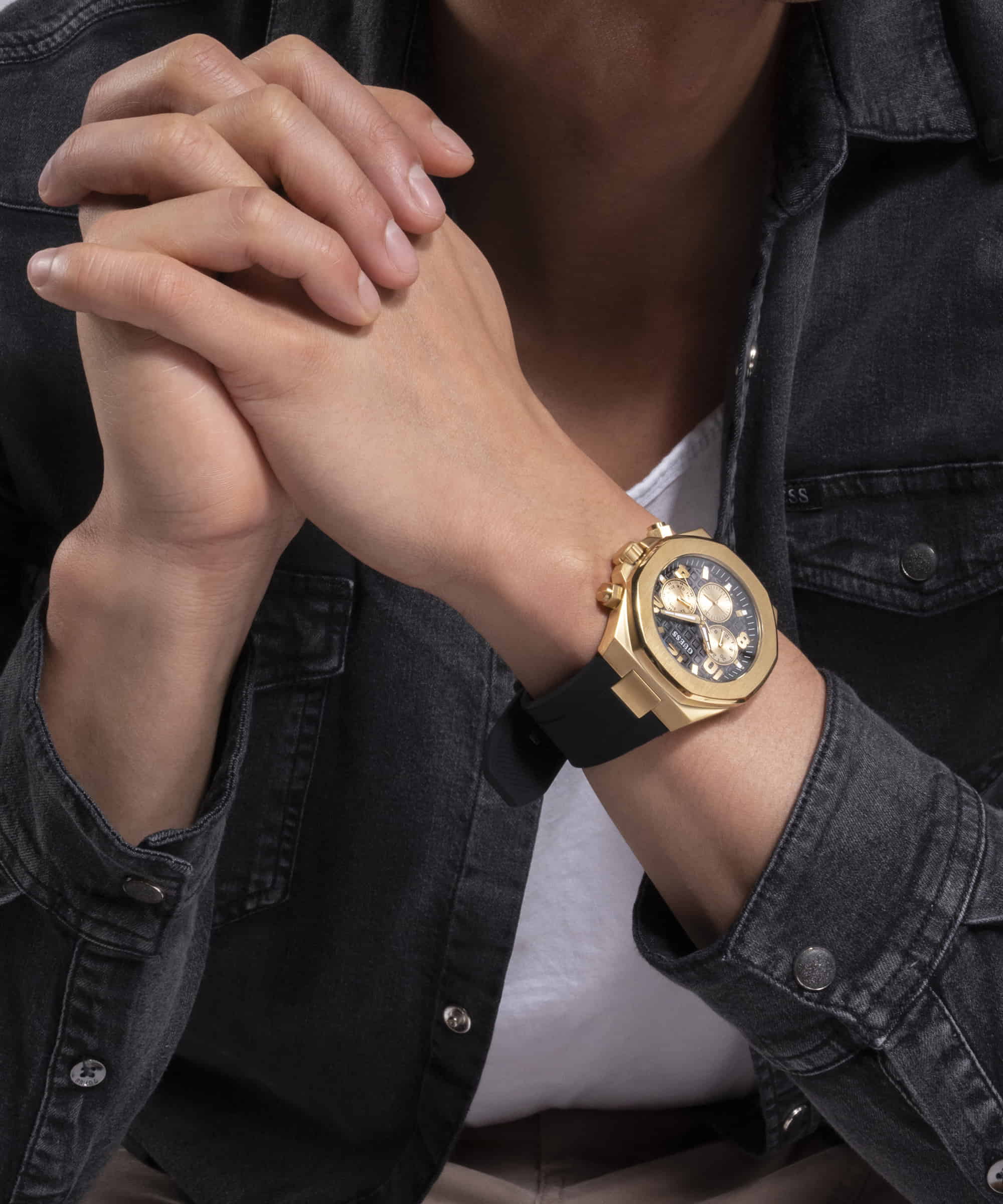 This stylish Guess men's watch combines rugged durability with modern aesthetics. The precision quartz movement ensures reliable timekeeping, while the sleek design makes it suitable for both formal occasions and casual wear. Built for longevity, this watch offers both style and functionality in one versatile package for the modern man.