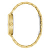 Elevate your everyday style with the oversized Gc Flair, infusing a sense of cool refinement into your wardrobe. This timepiece boasts a unique notched bezel and a luxuriously comfortable five-link bracelet. In this yellow gold tone variant, the watch features an eye-catching textured soft champagne dial. The date at 3 o'clock is accentuated by a magnifying glass, adding a touch of sophistication to your timekeeping experience.