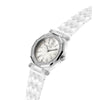 Turn heads with the radiant Gc Gleam in polished white ceramic. This luxurious 32mm timepiece pairs a gleaming ceramic case with a silver tone top ring adorned with sparkling crystals and a ceramic multi-link bracelet. The eco-friendly white mother-of-pearl dial creates a luminous backdrop that catches every light. The perfect accessory for the woman who values both elegance and modern design.