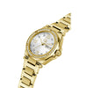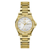 Stylish, sporty, and chic - the Gc Legacy hosts a unique 34mm case shape design with detailed top ring, patterned dial embellished with European crystals and structured H-link bracelet, here in full yellow gold PVD and off-white dial.