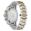Stand out boldly with the spectacular Gc SpeedRacer diver-look chronograph. This impressive 44mm timepiece combines a striking silver case with warm ivory gold tone accents, complemented by a dark blue rotating top ring and matching two-tone bracelet with subtle cable details. The stunning blue dial features distinctive asymmetrical sub-dials, creating a perfect balance of sporty sophistication and technical prowess. A commanding presence for those who appreciate exceptional design with unmistakable character.