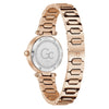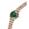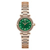 An elegant allure for the mini Gc Vogue Cable, which offers a beautiful 30mm case combining the sparkle of genuine cable with a radiant eco-friendly dark green mother-of-pearl and textured dial. The bracelet is elegantly contemporary, making the overall look very sophisticated, in a full rose gold PVD version.