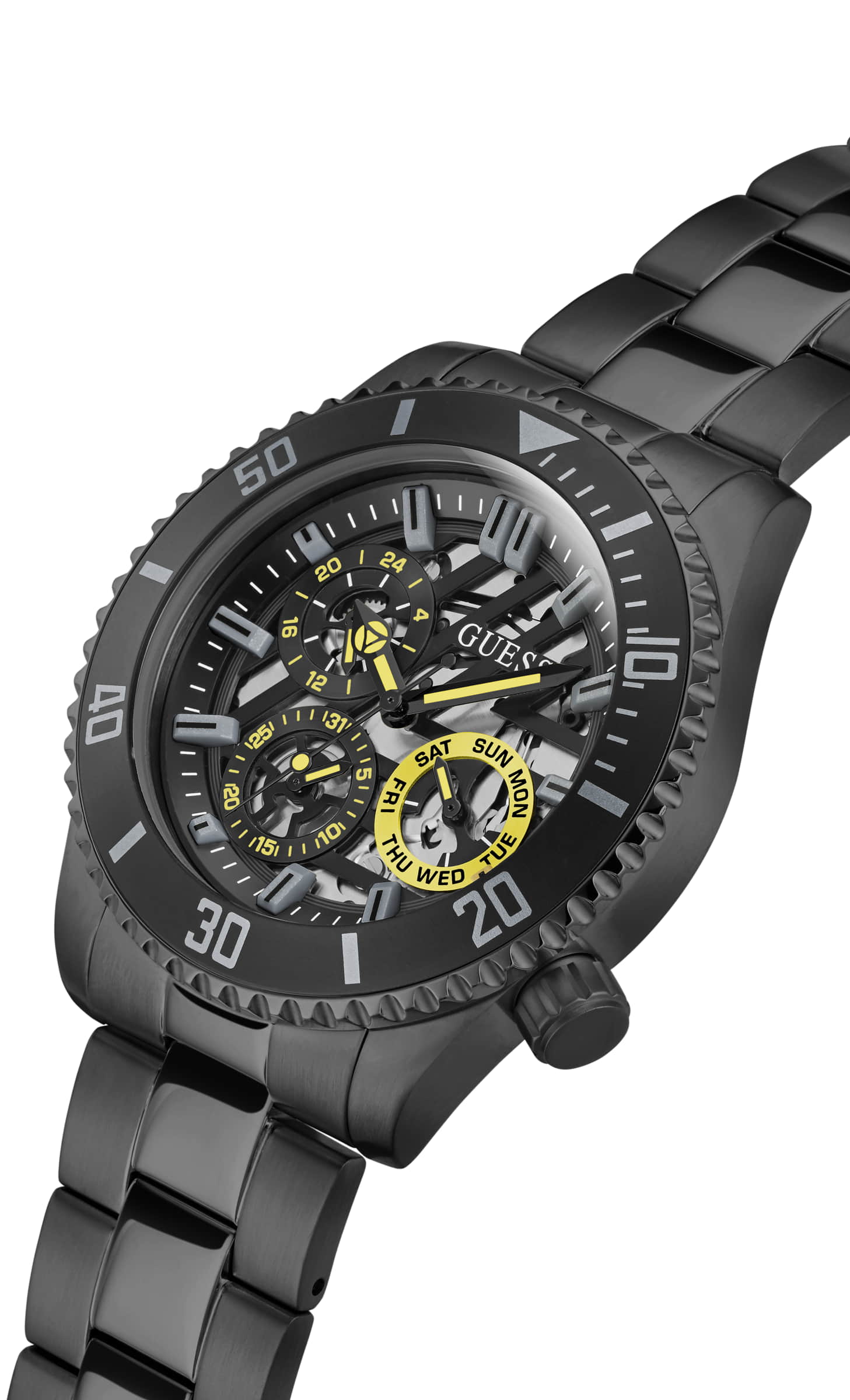 A bold Guess men's watch designed for those who appreciate both form and function. The durable materials and precision quartz movement ensure reliable timekeeping, while the sleek design makes it suitable for both business and casual wear. Built to last, this watch offers both elegance and practicality in one refined package.