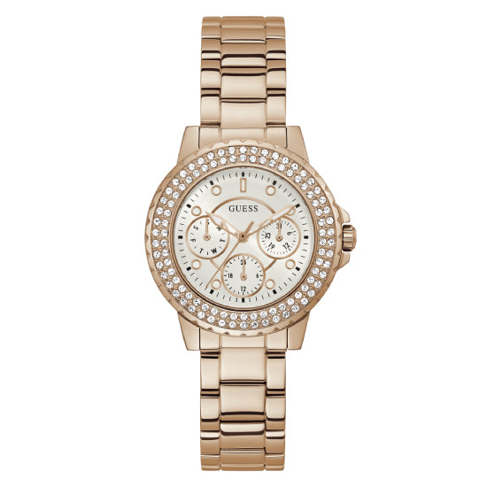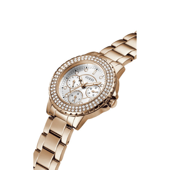 Guess Crown Rose gold Round Dial Multi-function Women Watch