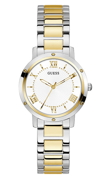 This stylish Guess ladies’ watch offers a minimalist design with durable materials. The precision quartz movement ensures reliable timekeeping, while the sleek aesthetic makes it suitable for both business and casual wear. Built to last, this watch provides both elegance and practicality for everyday use.