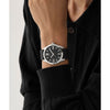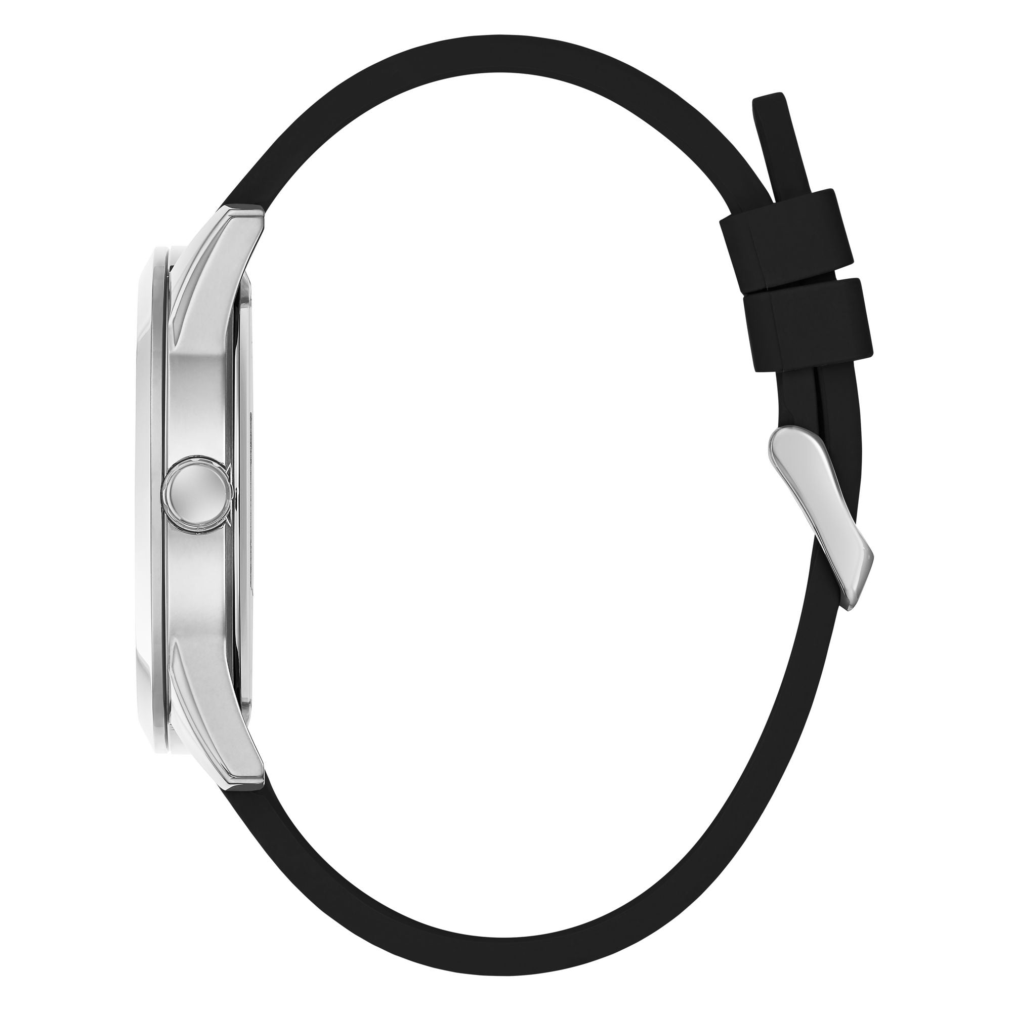 Sure to be a staple in his watch wardrobe, this new dress style features dynamic detailing on the dial paired with roman numeral indices and a smooth silicone strap.