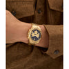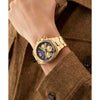 This new oversized dress style features a coin edge bezel and chrono-look multi-function dial on a sleek 3-link bracelet.