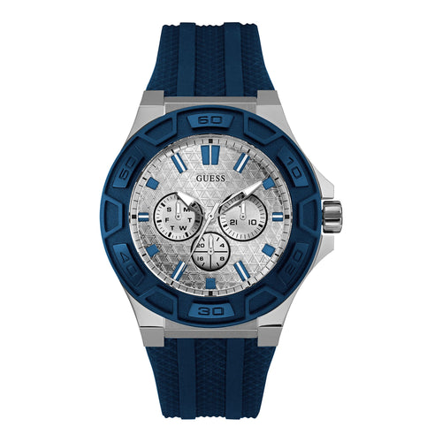 Experience timeless craftsmanship with the GUESS Watch for Men Analog, a true classic among water resistant watches for man Analog. Designed with a bold 45mm Silver dial and a stylish Blue Silicone Strap." this Men's watches model combines modern edge with vintage charm. Built for everyday wear, its Stainless Steel case ensures durability, while the 50 m water resistance makes it suitable for daily splashes and unexpected weather. The Analog watch for man runs on reliable Quartz movement, offering precise timekeeping that suits both casual outings and formal occasions. This watch for man ideal for those who appreciate a minimalist look in a classic watch for man making it a perfect choice for office, travel, or daily commutes. It also makes a thoughtful gift, combining elegance with practicality. Its Comes With minimal maintenance and a one-year warranty (limited to manufacturing defects).