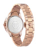 Set a trend among the crowd by wearing this women's analog watch from the POA-Lady SST-PW collection by PHILIPP PLEIN. Nestled in a 38 mm case, the green round dial is secured by a mineral glass. It exudes plain three hands. The stainless steel strap vaunts a rose gold hue that enhances the look of the watch. Furthermore, it is completed with a deployment clasp with push button clasp to ensure a secure fit on the wrist.