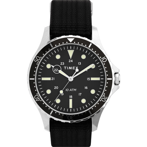 The best inspiration is always found while searching our archives. Our Navi takes inspiration from our earliest diver-style watches and makes it modern. We found what’s old and made it cool again. The traditional stainless steel case, black dial and black fabric slip-thru strap provide a modern take on this vintage design.