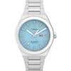 Channeling the bold designs and decadent glamour that filled the scene in ‘70s West Hollywood, the Q Timex® Continental brings refinement to our beloved Q Timex collection with a new streamlined 39mm brushed stainless-steel case with polished edges and a day and date window at 3 o’clock. The simple aquamarine dial features a radial texture and a clean presentation that’s effortlessly cool, protected by a flat mineral glass crystal and highlighted by faceted metallic hour markers and luminant hands for enhanced visibility in the dark. Completing the look is a tapered and integrated brushed stainless-steel bracelet that offers a truly ‘70s style as you let the hours slip away.