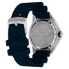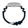Merging resilience and elegance with crucial functions for underwater pursuits, our Deepwater Meridian 200 is expertly built to venture deeper. A substantial 44mm stainless-steel case, fortified with a screw-down crown and screw-on caseback, effectively keeps water out and provides 200m of water resistance. This watch is powered by a reliable quartz movement, and we’ve equipped it with a sapphire crystal with anti-reflective coating, a sturdy crown protector, a magnified date window, a unidirectional ratcheting top ring, and Super-Luminova® hands and hour markers providing the luminosity you rely on as you venture below. A unique wave pattern brings dimension to the blue dial, while a perforated blue synthetic rubber strap ensures durability, comfort, and style both in and out of the water.