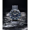 Merging resilience and elegance with crucial functions for underwater pursuits, our Deepwater Meridian 200 is expertly built to venture deeper. This one carries a new recycled stainless-steel case, modestly sized at 38mm and complete with a refined mix of brushed and polished finishes. It’s fortified with a screw-down crown and screw-on case back that effectively keep water out and provide 200m of water resistance. This watch is powered by a reliable quartz movement, and we’ve equipped it with a sapphire crystal with anti-reflective coating, a sturdy crown protector, a unidirectional ratcheting top ring, and Super-Luminova® hands and hour markers providing the luminosity you rely on as you venture below. A unique wave pattern brings dimension to the dial, while an HNBR rubber strap ensures durability and style both in and out of the water.