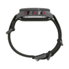 With multiple functions including a tide tracker, temperature sensor that can read the air or water temperature, and analog compass display all driven by a dedicated fourth hand, our Tide-Temp-Compass is the ultimate accessory for the tech-savvy professional with a love for adventure. We've updated it with a 43mm recycled 316L stainless-steel case in a brushed gunmetal finish that’s resistant to rust and corrosion, a double-layered recycled slip-thru fabric strap with a classic compass symbol, and a green-grey dial housed under a sapphire crystal with anti-reflective coating. Other details include luminescent hands and hour markers for enhanced visibility in lowlight conditions, a convenient date window at the 6 o’clock mark, a sturdy crown protector, red detailing on the pushers, and 100m of water resistance.