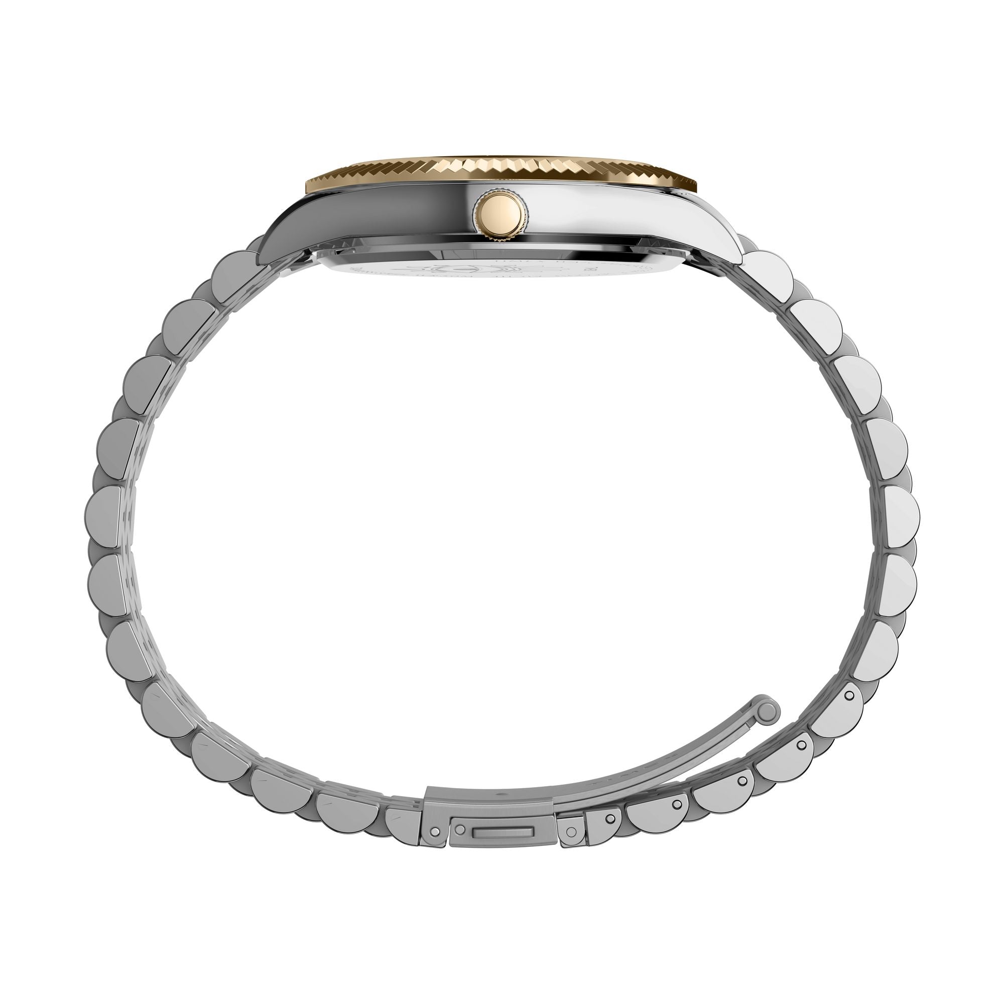 The 36mm case and coordinating bracelet are crafted from a combination of brushed and polished gold-tone and silver-tone stainless-steel, offering a brilliant glow that stands out on your wrist.