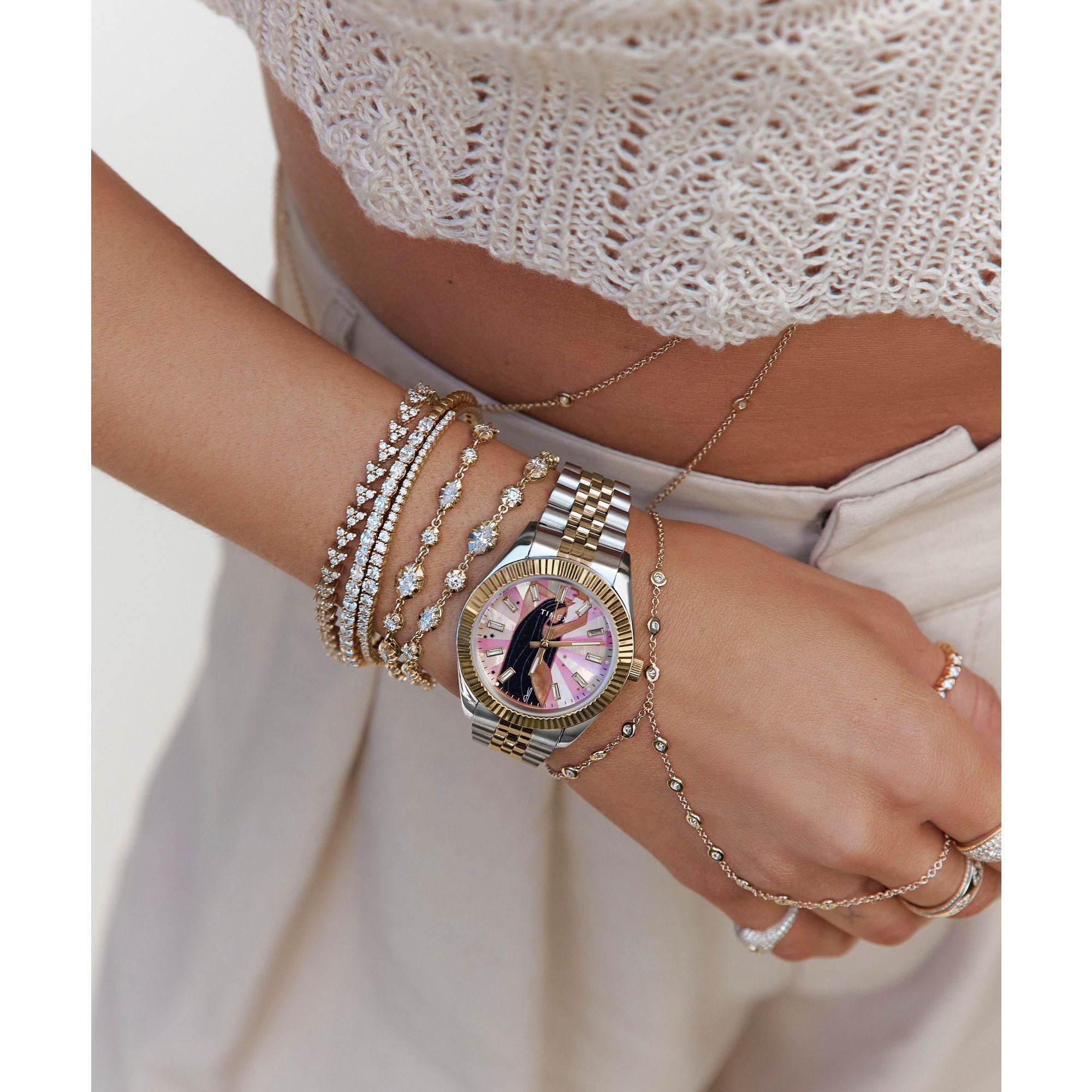 Each faceted crystal is cut and set by hand to maximize its brilliance and give you a watch that sparkles for a stunning look.