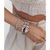 On the case back, you’ll find a highly detailed engraving of Jacquie's signature tribe eye as a symbol of endless protection and as a symbol of guidance.