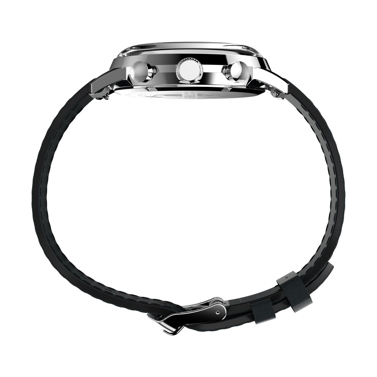 Our Marlin Chronograph Tachymeter boasts the distinction of being the first chronograph in our Marlin line, as well as the first Marlin powered by a quartz movement. This beautifully detailed rendition features a tachymeter index along its outer minute track to measure speed, a unique date window placement, and a natural leather strap ethically sourced from the Leather Working Group (LWG). Though its build breaks new ground in our watchmaking heritage, this timepiece retains the classic Marlin features with a sturdy stainless-steel case, domed acrylic crystal lens, and retro-style square markers at 3, 9, and 12 o'clock.