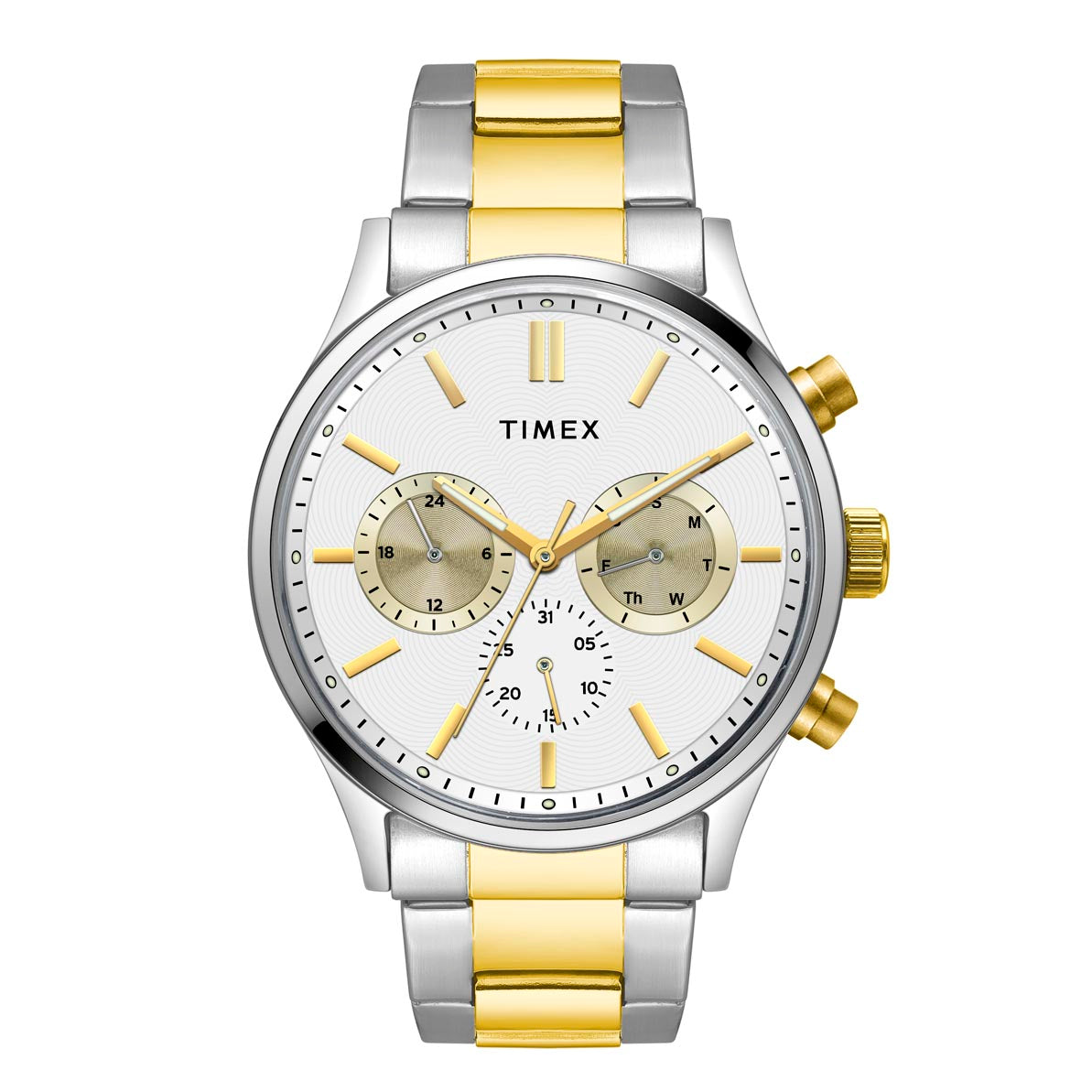 A bold Timex automatic watch featuring a modern design with durable construction. The automatic movement ensures reliable timekeeping, while the rugged aesthetic makes it suitable for both formal occasions and casual outings. Built to last, this watch offers both style and functionality for the discerning wearer.