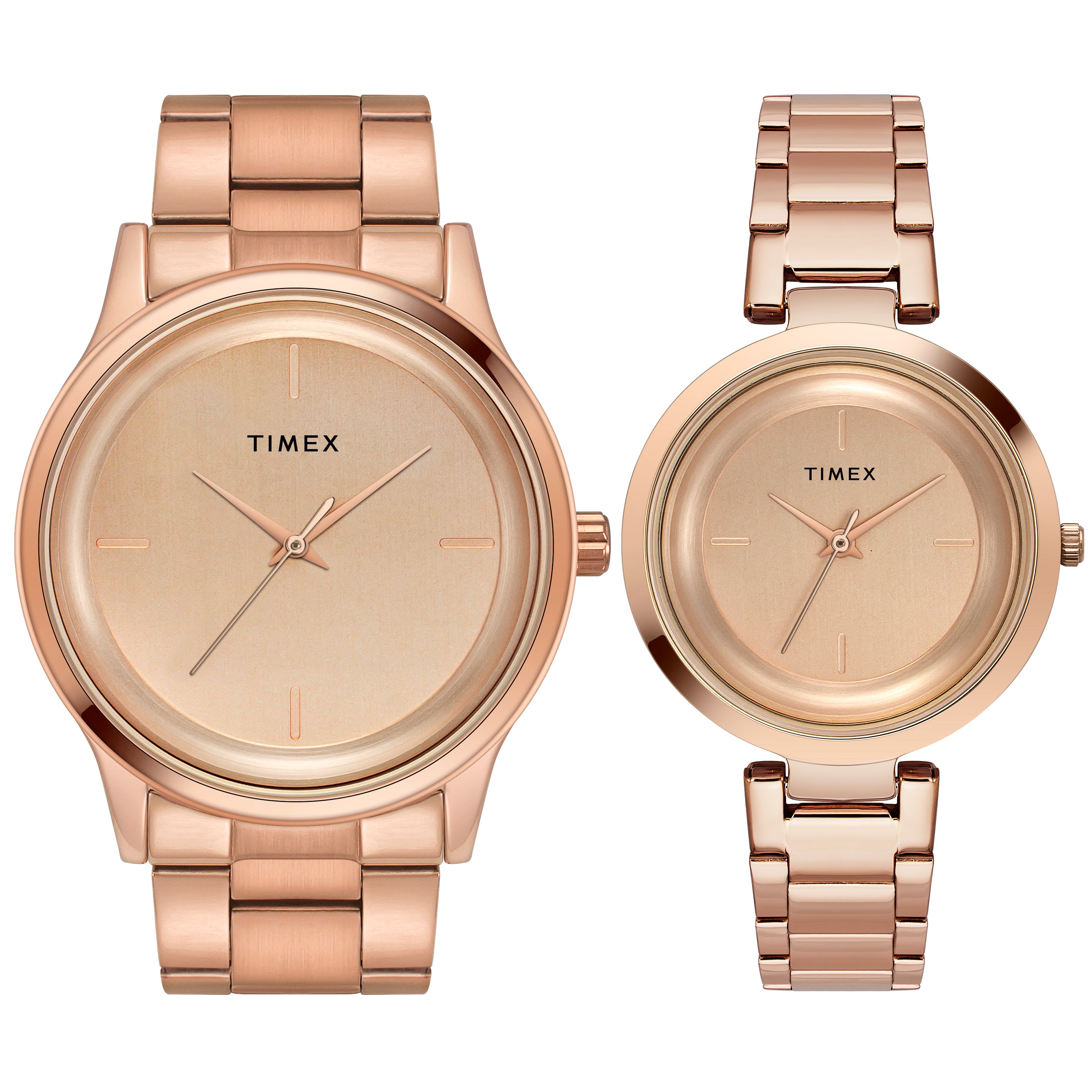 Timex Rose Gold Round Dial Quartz Analog Pair Watch