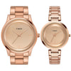Elevate your couple style with this stunning pair of Timex watches in luxurious rose gold. The matching set features elegant round analog dials with minimalist design, showcasing clean lines and sophisticated simplicity. The larger timepiece offers a classic masculine profile, while the smaller one presents a delicate feminine aesthetic. Both watches boast premium stainless steel construction with a lustrous rose gold finish that adds a touch of glamour to any ensemble. The coordinated metal bracelets provide comfortable wear and secure closures. With their timeless design elements including subtle hour markers and sleek hands, these watches make an ideal choice for couples who appreciate refined accessories. Perfect for daily wear or special occasions, this matching set serves as a beautiful symbol of shared moments and complementary style.