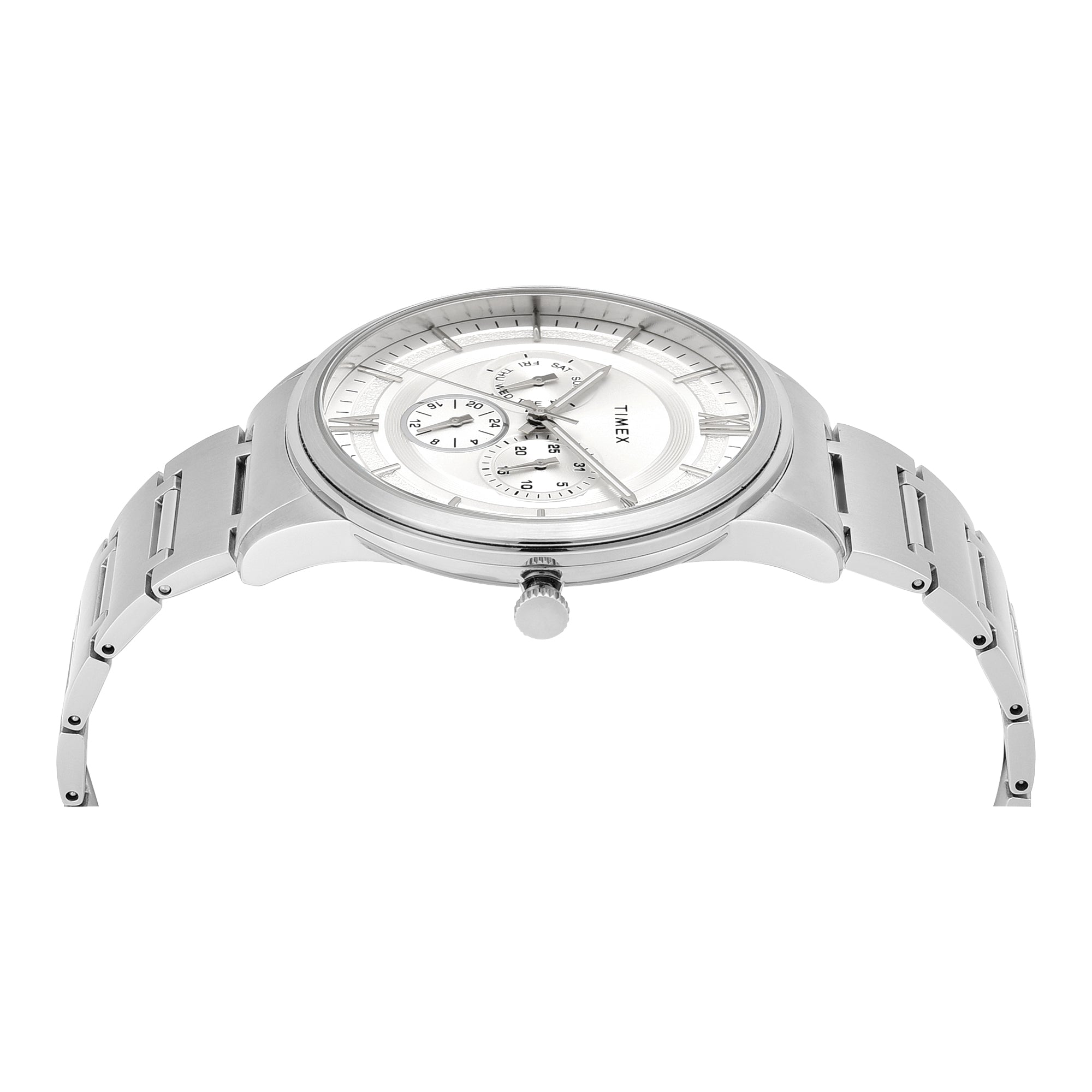 Experience timeless craftsmanship with the TIMEX Watch for Men Analog, a true classic among water resistant watches for man Analog. Designed with a bold 42mm Silver dial and a stylish Silver Stainless Steel this Men's watches model combines modern edge with vintage charm. Built for everyday wear, its Stainless Steel case ensures durability, while the 50 m water resistance makes it suitable for daily splashes and unexpected weather. The Analog watch for man runs on reliable Quartz movement, offering precise timekeeping that suits both casual outings and formal occasions. This watch for man ideal for those who appreciate a minimalist look in a classic watch for man making it a perfect choice for office, travel, or daily commutes. Whether you're shopping a watch for man, a formal watch for man, or a timeless wrist watch for Men, this model checks all the right boxes. It also makes a thoughtful gift, combining elegance with practicality.Its Comes With minimal maintenance and a one-year warranty (limited to manufacturing defects).