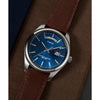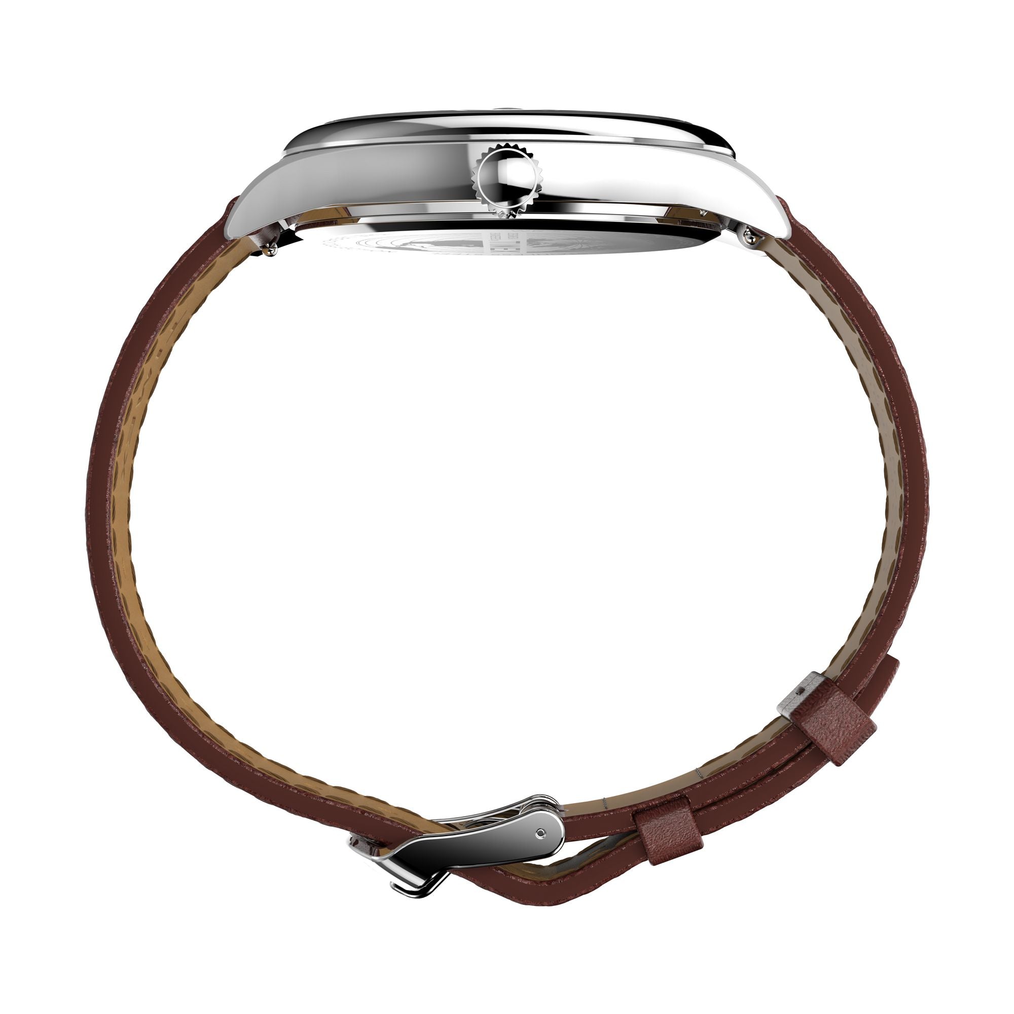 A fresh take on a traditional watch, the Timex Legacy never fails to find new ways of telling our story. This timeless piece embraces modern watchmaking with easy-to-wear proportions, now updated with an eco-friendly brown vegan leather strap. Its recycled stainless-steel case houses a blue sunray dial with applied indices, a movement with the day of the week spelled out in full at the 12 o’clock position, and a magnified date window at the 3rd hour marker. It’s a 41mm goes-with-anything watch—a testament to our heritage and well-suited for everyday wear.