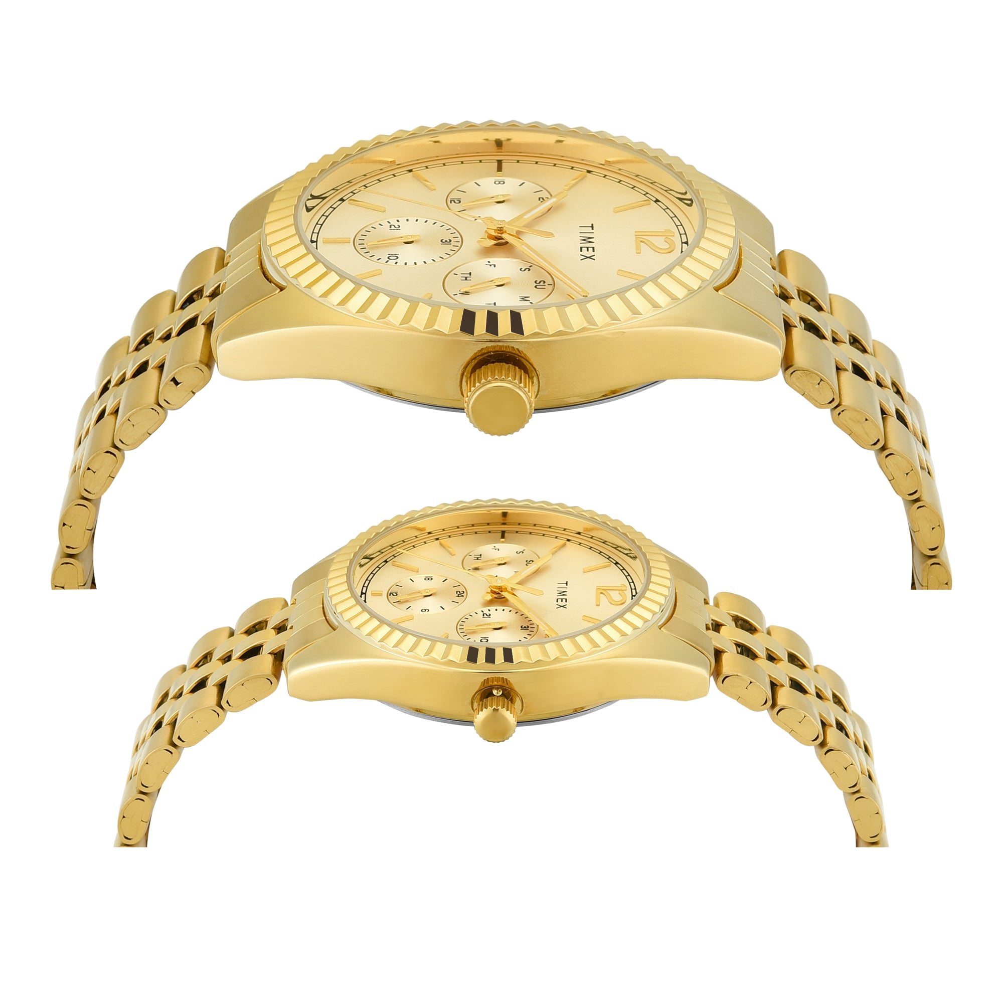 TIMEX Trendline Champagne Round Dial Analog Pair's Watch - TW00PR345