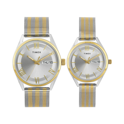 TIMEX Trendline Silver Round Dial Analog Pair's Watch - TW00PR352