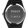 We turned to Italian street artist TVBOY to flip the script on tradition and bring you a bold update to our Timex Legacy Ocean. Featuring artwork pulled from his “History of Art - Oil” series, this timepiece is a love letter to art, irony, and the timeless power of thought-provoking design. Titled “Leo & Lisa,” the dial artwork remixes Italian Renaissance romance with loud color, spray-painted elements, and TVBOY’s signature grit, reframing classic love for a modern world. Encircling the dial is a black 42mm case made from #tide upcycled, ocean-bound plastic, perfectly paired with a matching bracelet complete with a fold-over clasp.