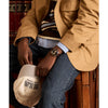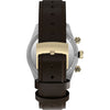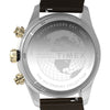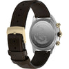 The Timex Waterbury Heritage Chronograph combines modern functionality with timeless design, featuring a chronograph to track elapsed time and a black tachymeter bezel for determining average speed. Encased in a robust 39mm stainless-steel case with vertical brushing, the black dial is accented by contrasting sub-dials and safeguarded by an anti-reflective mineral glass crystal. Luminant hands ensure enhanced visibility, while applied indices and intricate detailing on the crown and pushers add a refined touch. Versatility is key, with a brown natural leather strap that’s perforated for breathability.
