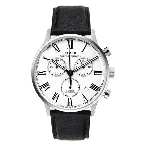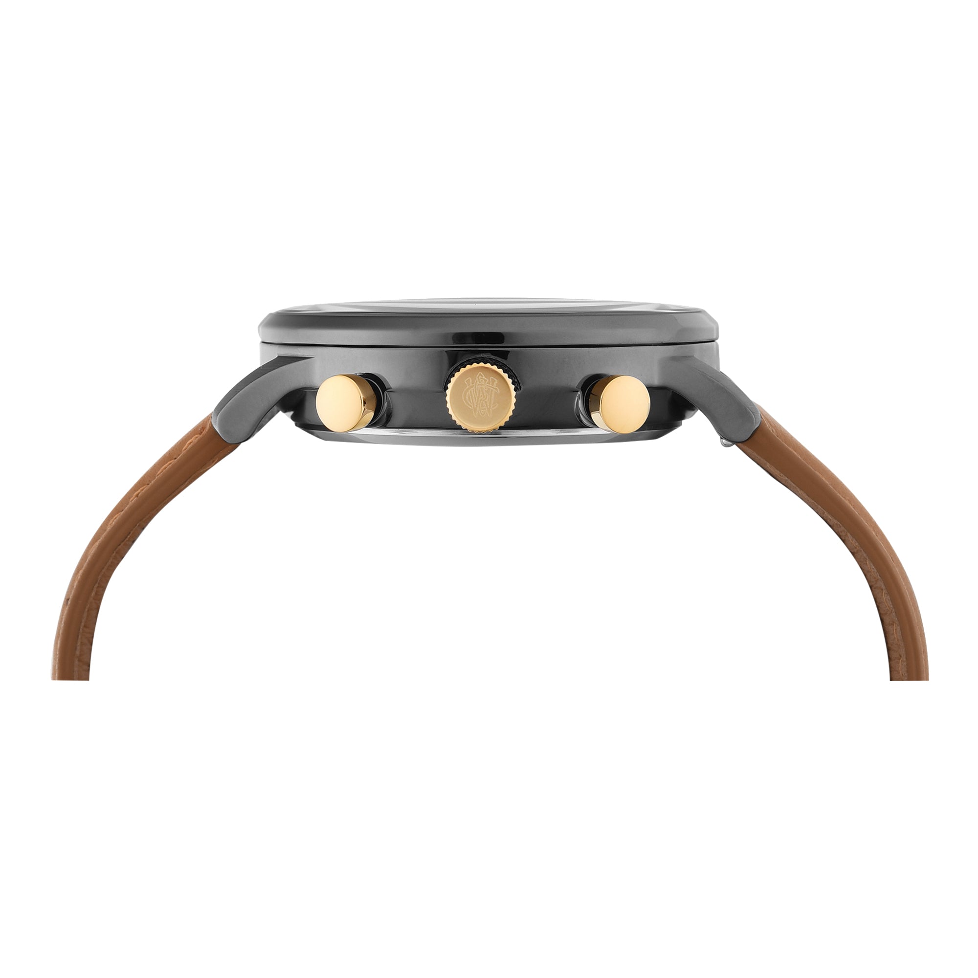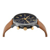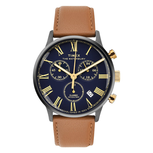 We have looked to our past, and we’re paying homage to our original watch collection by using the Waterbury Watch Company logo on the dial and second hand, which bears the stylized W. Each watch displays our attention to craftsmanship and detail, with finely-finished surfaces and careful applications of watchmaking ingenuity. Featuring a gunmetal stainless-steel case and gold accents, a classic navy dial with Roman numerals and a rich tan natural leather strap, our Waterbury Classic Chronograph unites all of these elements into something that delivers function just as well as form.