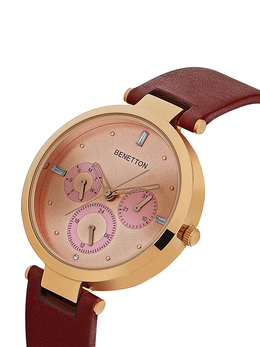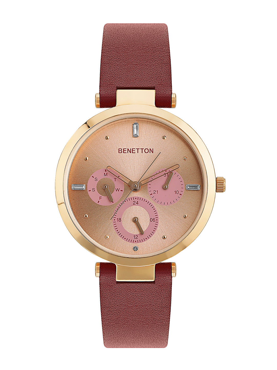 United Colors Of Benetton Rose Leather Gold Round Dial Quartz Analog Men Watch