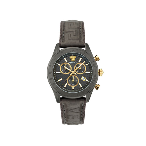 Versace Chrono Master Leather Grey Round Dial Quartz Analog Men Watch