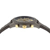 A new masculine timepiece with a 44 mm case body enriched with a chrono movement and window date at 4h. The dial is enriched with Versace logomania pattern while the top ring features bold logo and numbers. A perfect timepiece combining sporty look and Versace DNA.