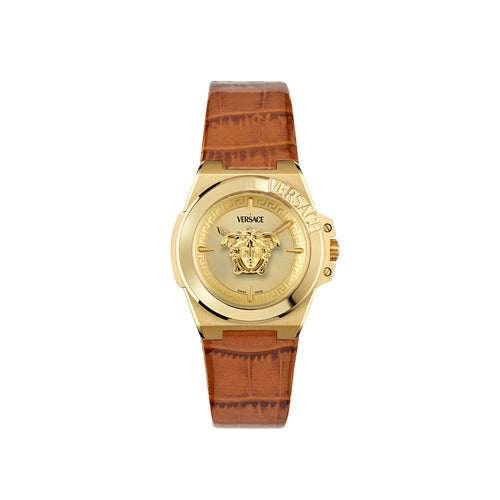 Versace Hera Leather Gold Tone Round Dial Quartz Analog Women Watch