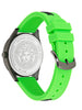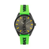 A cool and modern watch full of Versace brand DNA. The vertical and bold Versace lettering gives a sporty- chic look to this 42mm slim case body. The dial is enriched with 3 hands movement and bold indexes that give a strong personality to the watch. Available in silicone strap with Versace lettering embossed.