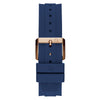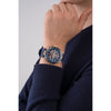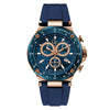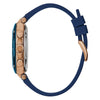 Harness the Gc sporty spirit with this emblematic two-tone rose gold and blue chronograph. The silhouette of this watch is strikingly masculine thanks to a blue square pattern dial with rose gold accents, a blue PVD multi-faceted bezel, iconic screw design details, and blue silicone strap.